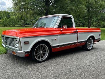 SOLD! 1971 Chevrolet C10 2WD shortbed truck. Factory Hugger Orange with a recent restoration including new paint, new interior, new drop suspension, and new 20 inch wheels and tires.